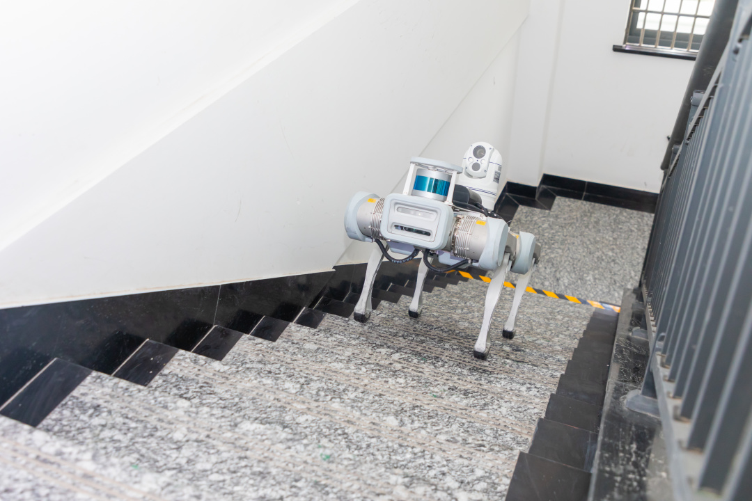 智能巡检四足机器人不同于传统的轮式巡检机器人,它具备极强的场地通过性,可实现楼梯、草地、碎石等复杂场地巡检,很好地填补了室内多楼层变电站机器人巡检领域的空白。