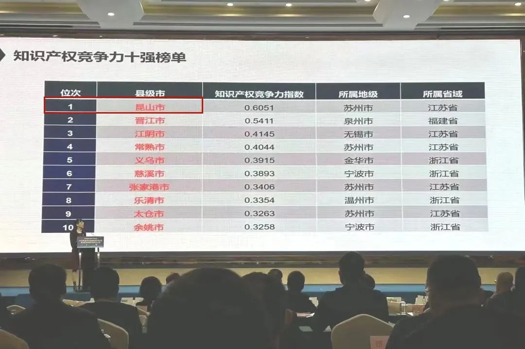 大会发布了《2021年中国县域知识产权竞争力百强报告》,昆山市蝉联中国县域知识产权竞争力排行榜第一名。尤其是在创新资源投入力度、知识产权创造能力指数、知识产权保护能力指数三个维度均排名第一。