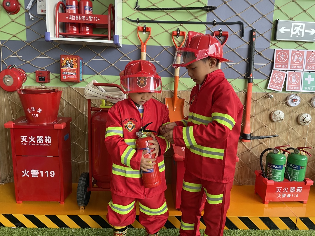 消防角现在成了孩子们的消防“第二课堂”,我们会在这儿给孩子们上消防安全启蒙课,用直观的方式让幼儿掌握消防知识和消防技能。