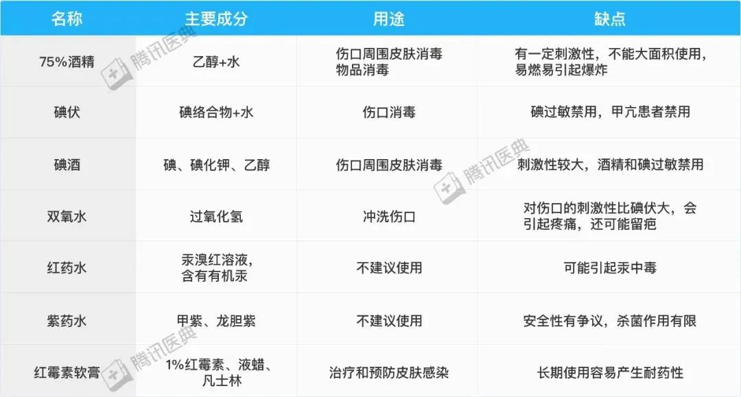 3.伤口消毒不建议用红/紫药水;