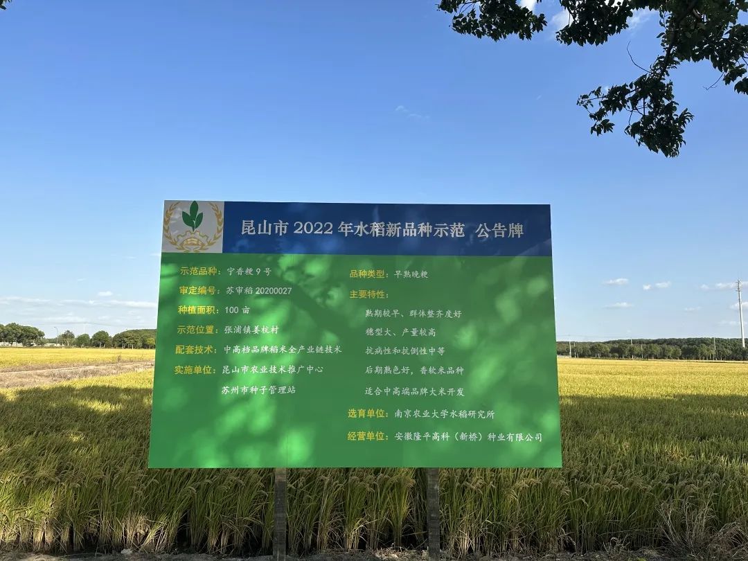 昆山作为区域示范基地加入该项目,以推广重大品种宁香粳9号为核心,成立专家指导站1个,设置昆山市张浦镇区域示范展示基地和4个推广基地,打造昆山市优质食味稻米产业新型经营主体联盟,共设“宁香粳9号”示范片面积2000余亩,全市推广面积1.52万亩。