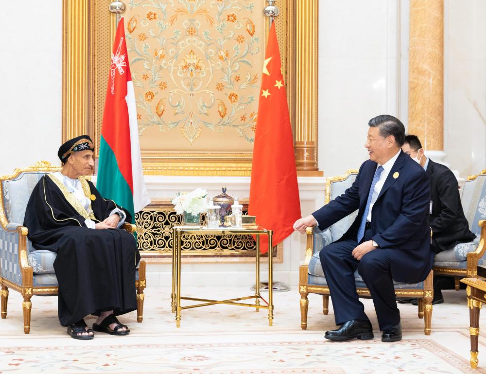 ▲当地时间12月9日下午,国家主席习近平在利雅得会见阿曼内阁副首相法赫德亲王。新华社记者 黄敬文 摄