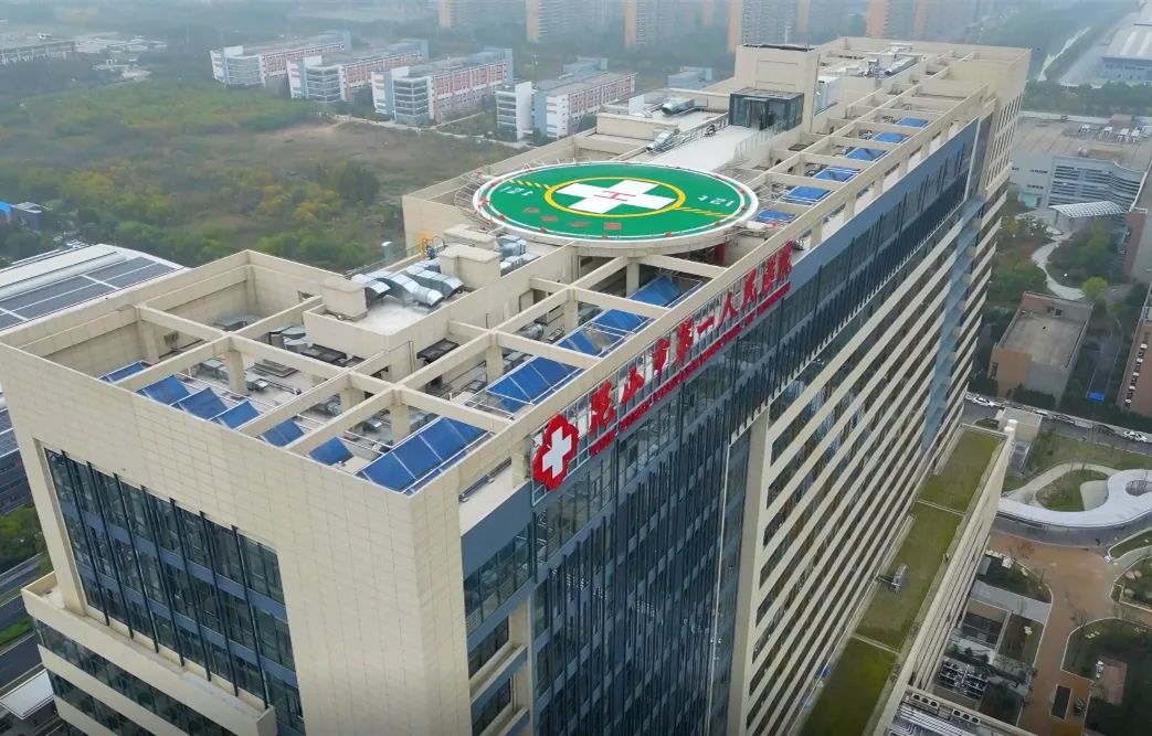 ▲中心住院楼21层顶楼建设了停机坪,利用航空飞行器,提供紧急医疗服务和突发公共事件医疗救援