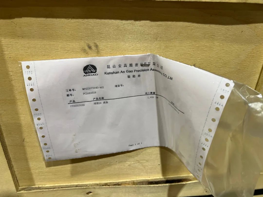 昆山安高精密组件有限公司的发货单