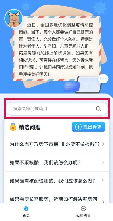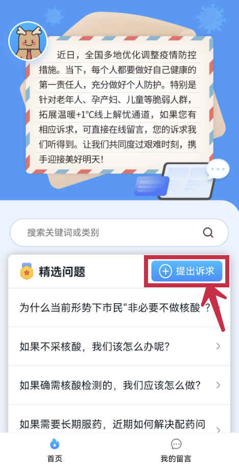 “提出诉求”栏目