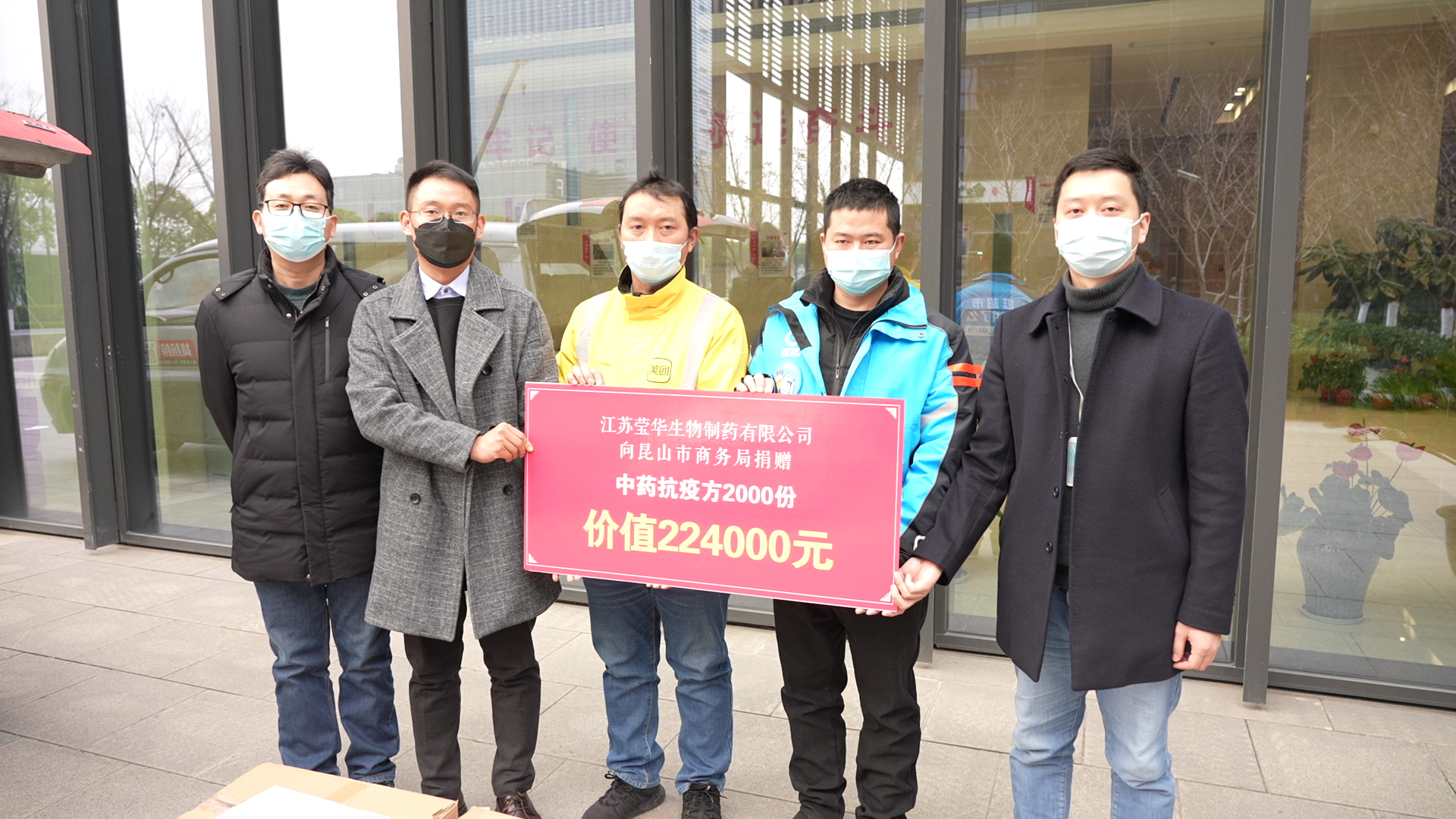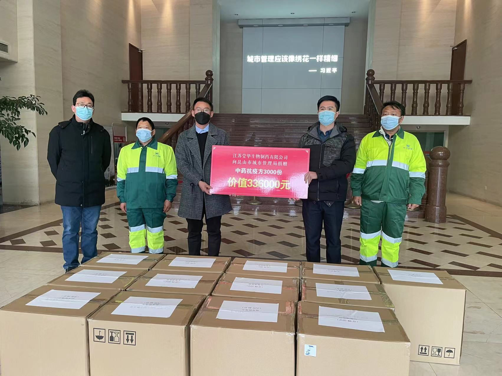 12月28日下午,江苏莹华生物制药有限公司工作人员为环卫工人、外卖配送员捐赠2万剂中药汤剂,感谢这些“城市守护者”在特殊时期为维系城市正常运行、方便市民生活所作的贡献。