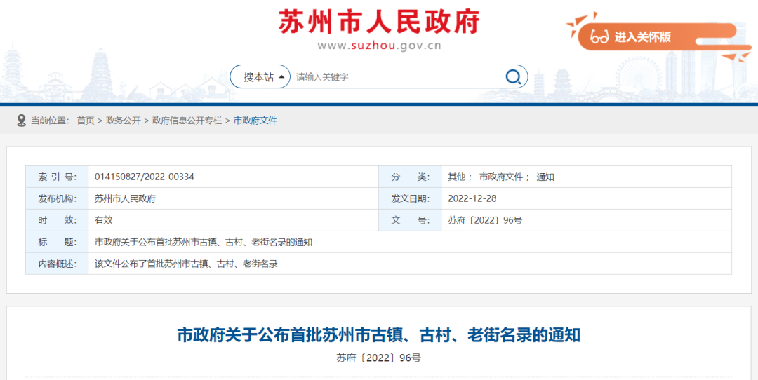 苏州市人民政府公布了