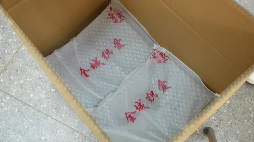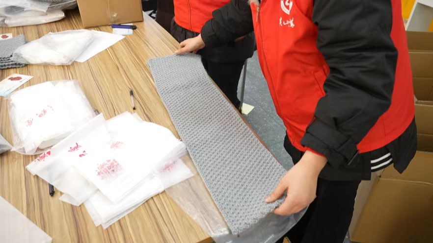 目前我们正在打包装箱,我们会将这批围巾用物流运输的方式送到新疆阿图什市,传递昆山的一份关爱 。