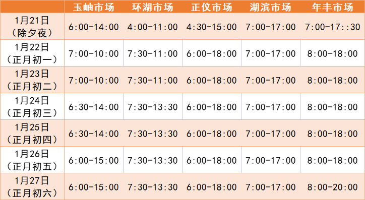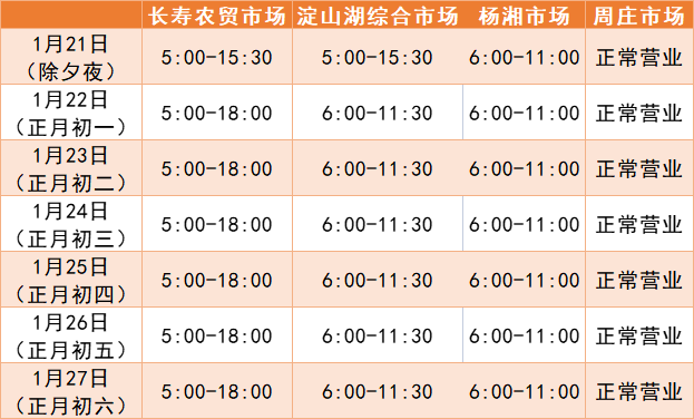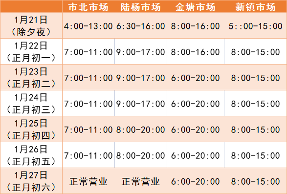 各农贸市场春节营业时间