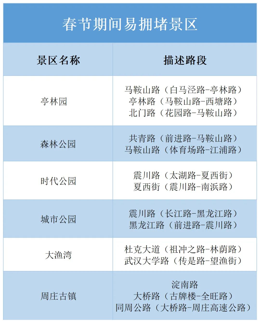 节假日期间,市民出游需求量增大,全市重点景区交通流量将有较大幅度上升。以下路段易出现车辆缓行现象,请过往车辆提前规划出行路线,尽量绕行通过。