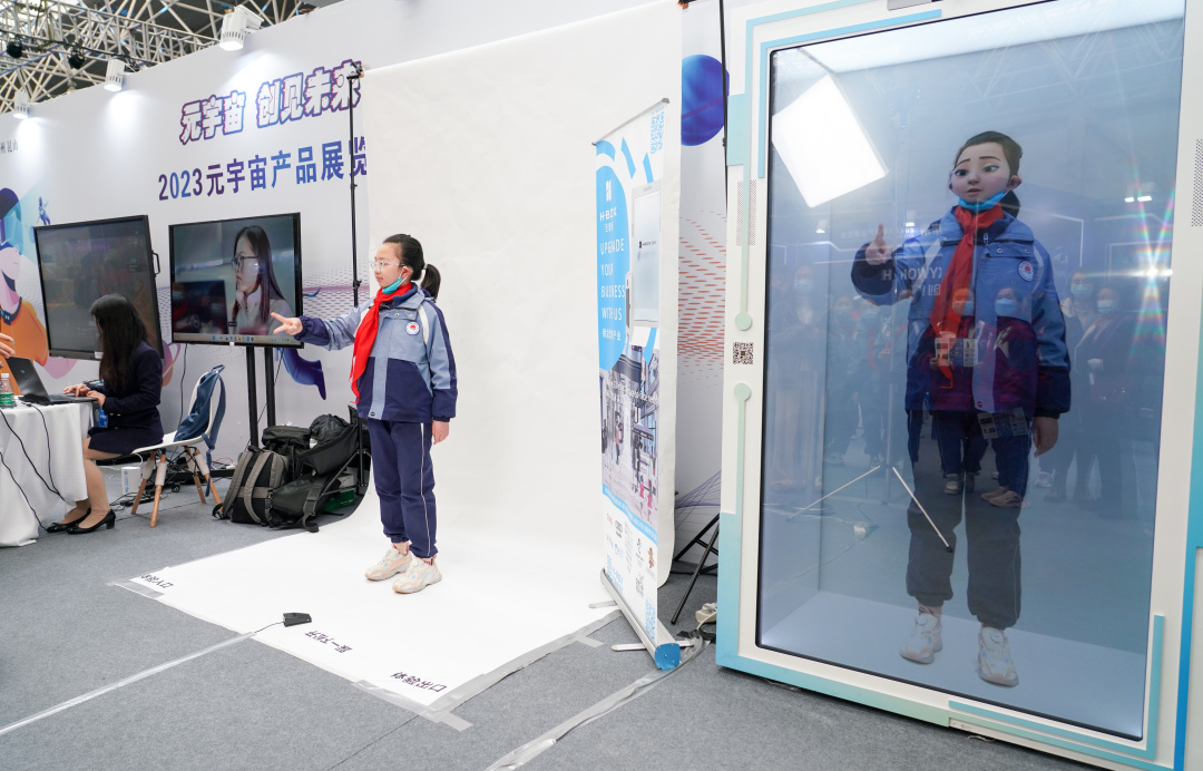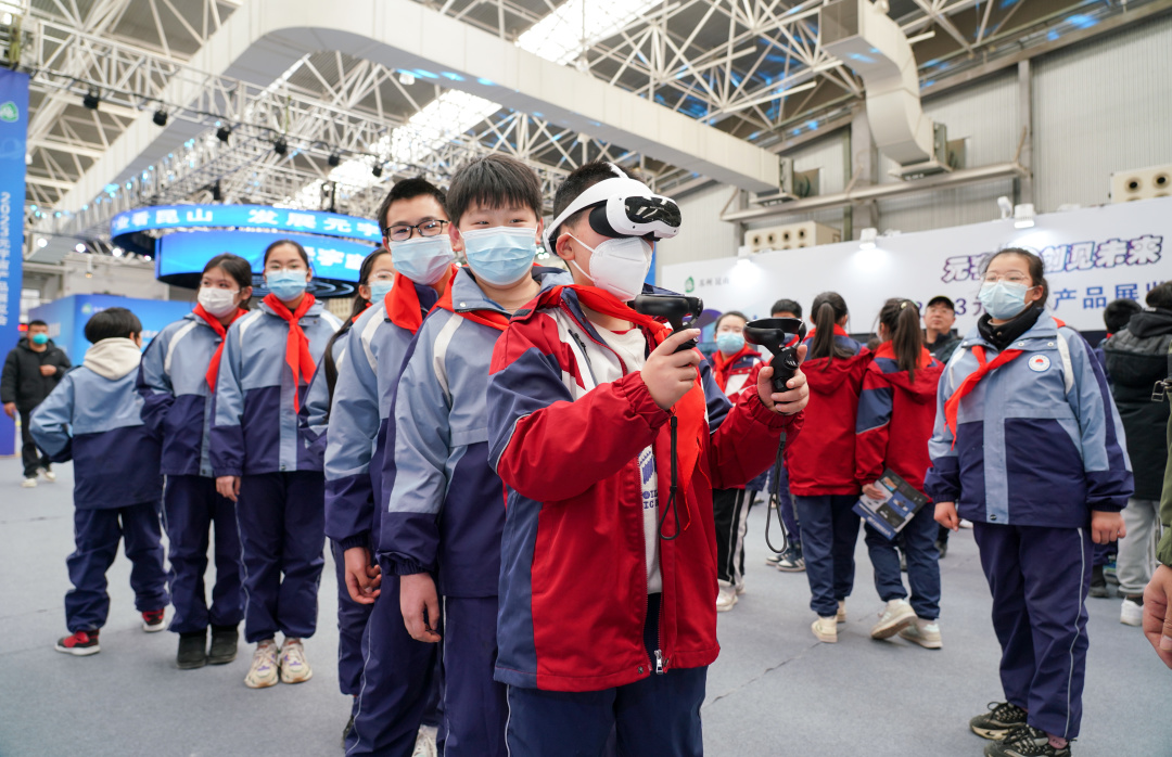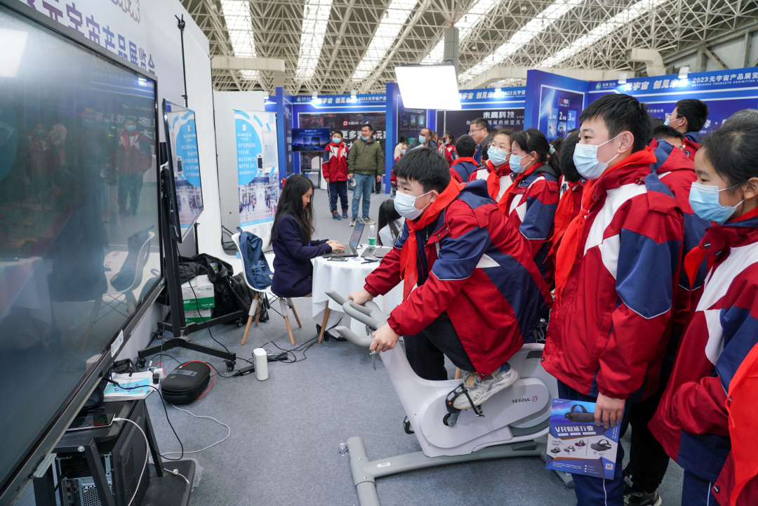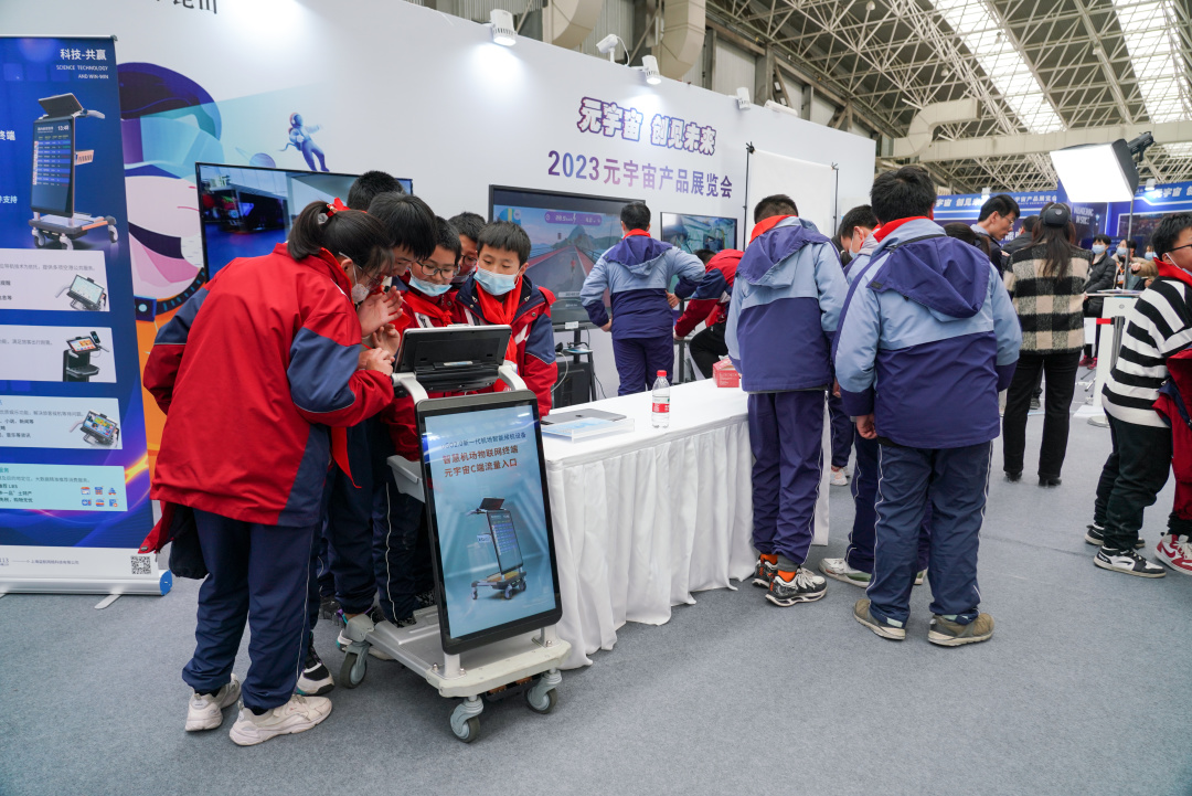 2月17日下午,在市教育局的组织下,晨曦小学105名学生跟随老师来到2023元宇宙产品展览会现场,通过AR、VR等设备,以可观可感可触碰的形式,零距离探索不同行业和特色领域的元宇宙应用场景,感受科技带来的神奇魅力。