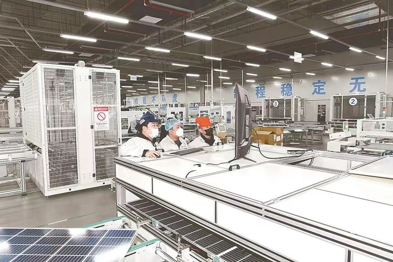 在天合光能智能制造数据中心大屏幕上,订单完成情况、车间当日入库产出、产能耗电量等数据一目了然。“从领料、加工到包装入库,所有生产环节都连接到MES系统,这样便于我们掌握产量、质量等关键数据。”天合光能盐城基地副总经理宣鑫说,“每一片组件的生产日期、使用材料、工艺参数等可随时追溯。”