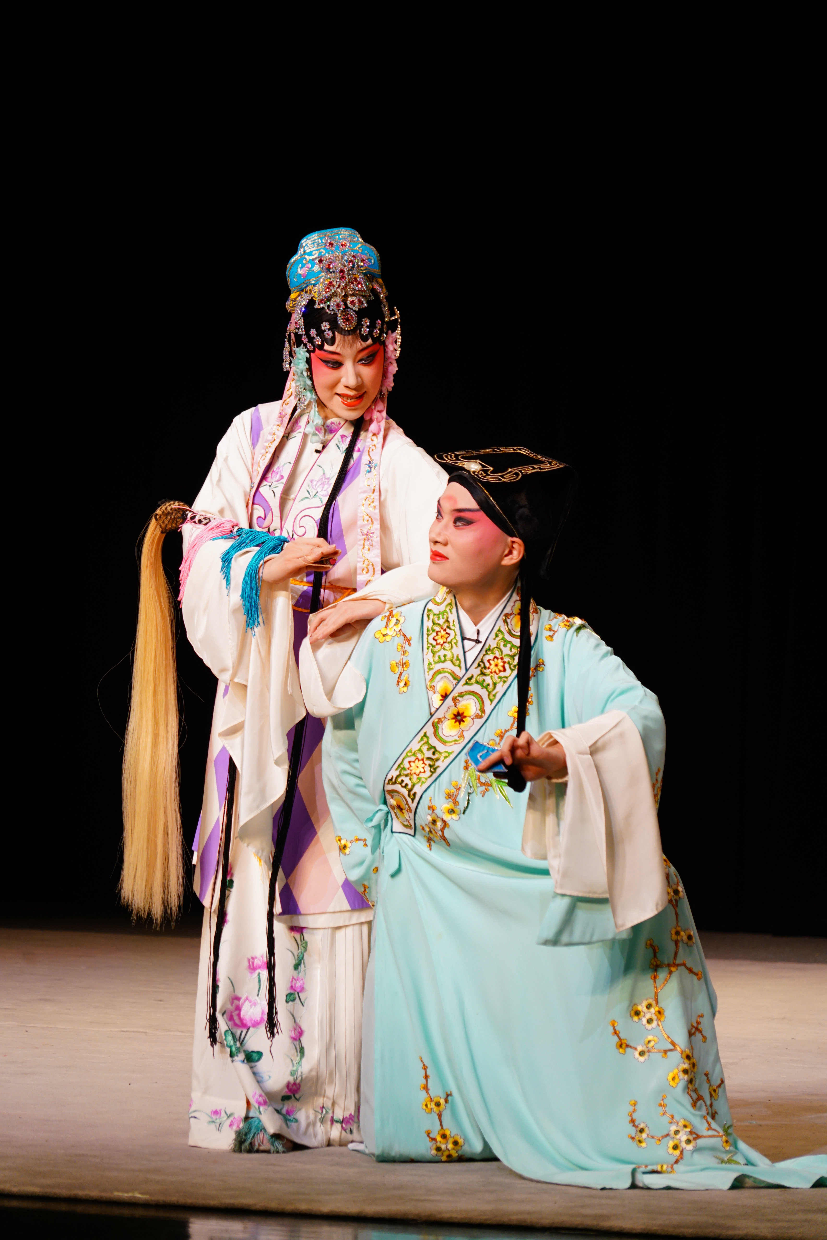 清丽动人的戏腔,典雅婉约的唱词,随着音乐响起,三出经典折子戏《玉簪记·偷诗》、《牡丹亭·离魂》、《货郎担·女弹(tán)》一一上演,内敛、略带娇羞的陈妙常;孤独、悲伤等待梦中之人的杜丽娘;中年普通说书女子张三姑,许丽娜以闺门旦、正旦应工,用传神的表演在舞台上树立起了三个截然不同的人物形象,尤其是《牡丹亭·离魂》中一曲《集贤宾》低回婉转,许丽娜的动情演绎催人泪下,把昆曲写意、诗化的表演特质体现得淋漓尽致,带领观众走进了昆曲旦角的唯美世界。