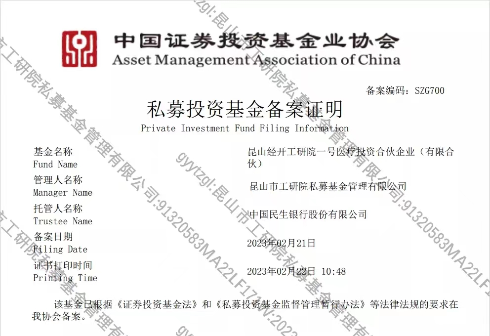昆山经开工研院医疗投资基金通过中基协备案