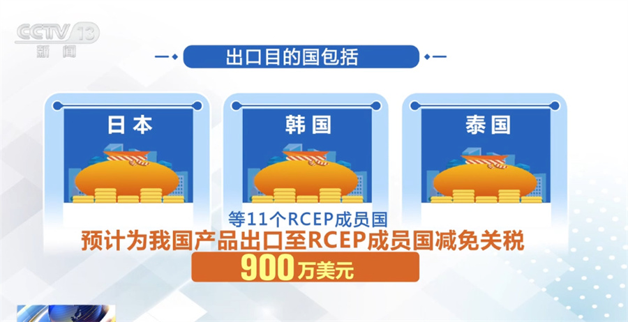 2023年1月,全国贸促系统RCEP原产地证书签证金额为6.21亿美元,同比增长62.09%;签证份数为16297份,同比增长137.39%;出口目的国包括日本、韩国、泰国等11个RCEP成员国,预计为我国产品出口至RCEP成员国减免关税900万美元。
