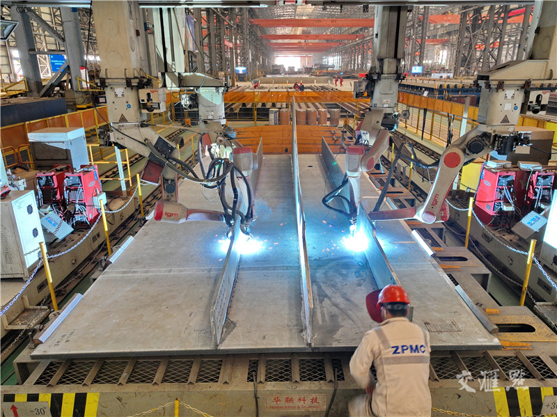 【南通】2月21日,张靖皋长江大桥ZJG-C3标段在振华重工大南通基地开工点火,标志着张靖皋长江大桥北航道桥南北主塔制造项目进入全面投产阶段。张靖皋长江大桥连接苏州、泰州和南通3个城市,跨江段全长7859米,分南航道桥、北航道桥及引桥,北航道桥为主跨1208米的双塔单跨吊悬索桥,与目前在建世界最大跨度悬索桥的南航道桥并称“姊妹桥”。许丛军摄 视觉江苏网供图