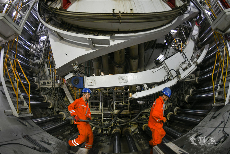 【江阴】1月17日,国内在建最大直径盾构隧道——江阴靖江长江隧道的施工现场,建设者坚守岗位、奋战江底,全力保障项目稳步推进。本报记者 肖勇 摄