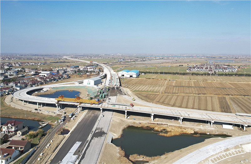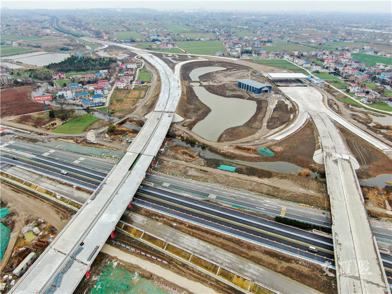 【如皋】1月15日拍摄的沪陕高速公路平潮至广陵(九华段)扩建工程施工现场。沪陕高速公路平潮至广陵段扩建工程是我省重大交通基础设施项目,目前,工程进展顺利。徐慧 摄 视觉江苏网供图