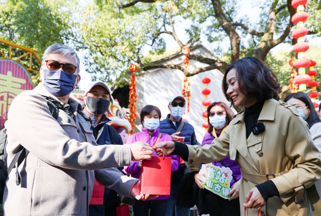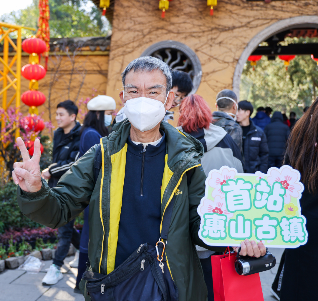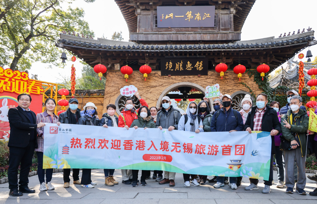 2月26日下午,无锡惠山古镇景区迎来一批来自香港的游客。这也是内地与港澳人员往来全面恢复后,无锡接待的首个入境旅游团。