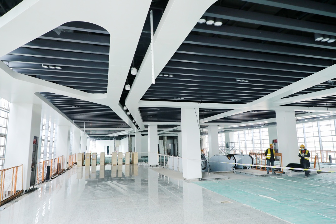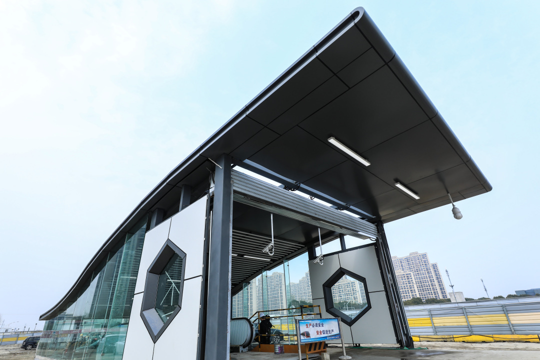 列车平稳运行,不到十分钟便抵达花桥博览中心站。该站点还在加紧进行最后的装修收尾工作。据介绍,苏州轨道交通11号线全线车站设置采用标准站和重点站相结合的方式,标准站从“昆曲” 和“江南水乡”中提取出柔美温婉的共性特点,将柔美的线条感运用到空间造型中,以现代手法演绎江南水乡。重点站打造了超宽站台中庭天窗、无柱拱顶、中庭等特色车站空间效果,利用整体空间运用一体化与模数化的设计手法,将现代与传统融合,展现城市的气质与情怀。