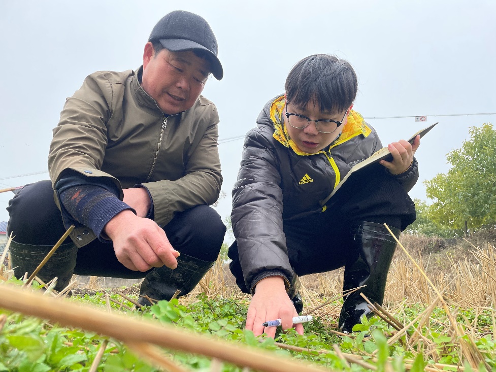 在湖南益阳武圣宫镇的千亩绿肥基地,农技人员和种植大户正在查看绿肥长势。宋梅摄