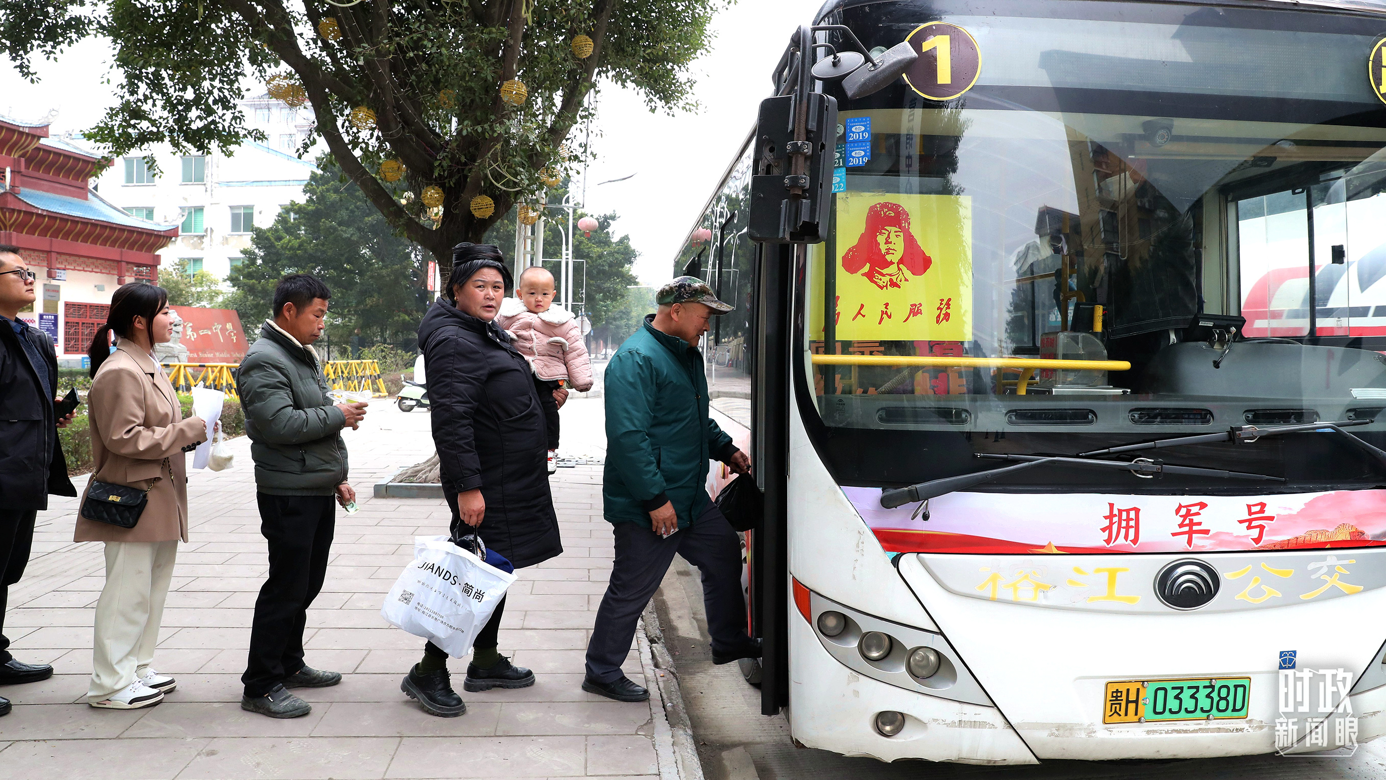 △2023年3月4日,贵州榕江县“拥军号”公交车开通,市民们正在刷卡上车。(图/视觉中国)