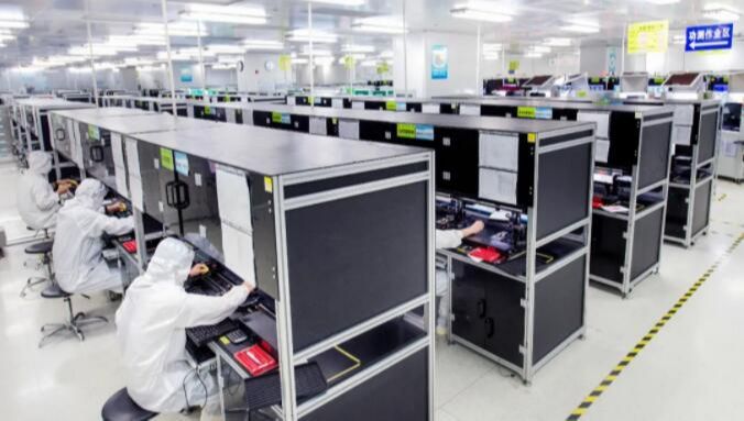 前不久的一个下午,记者戴好网帽和口罩,穿好无尘服,经过喷淋室360度无死角除尘后,走进位于昆山高新区的丘钛科技无尘生产车间。在这里,只见多条机器人手臂按照设定的轨道,自动完成着摄像头模组组装等多个环节的生产工序。一旁的显示屏上,实时显示着设备的工作状态。“这些生产线由许多外形相似、功能不同的自动化模块嵌入组成,通过不同生产模块间的灵活互换,可快速调整生产线的工艺流程及参数。”丘钛微电子科技有限公司设备部副经理陈俊祥告诉记者,智能自动化改造前,一名工人负责一台机器,智能化改造后,一名工人可以负责6~8台机器,大大提高了工作效率。