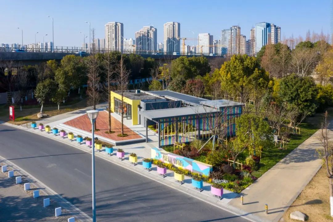 位于震川西路跨娄江桥下,用三条轴线编织桥下“绿野仙踪”。“密林探幽廊”——彩色渐变的光影栈桥串联文韵江岸;“滨水漫步道”——沿河岸打造慢行步道,风景层层交织;“杉林小径”——道路两旁保留的水杉树整齐划一、郁郁葱葱,形成了一道天然拱门。