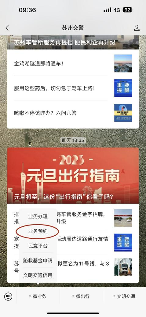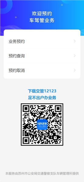 关注“苏州交警”微信公众号-进入微业务-选择业务预约-选择车驾管业务预约。