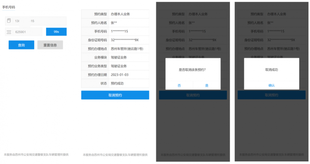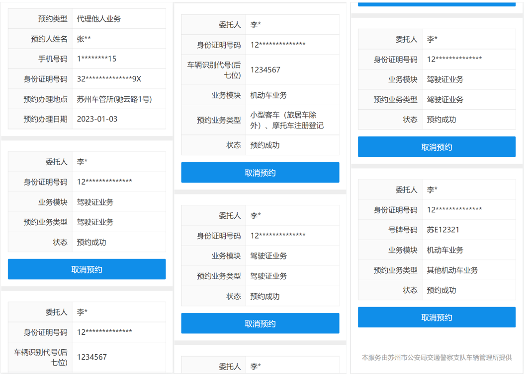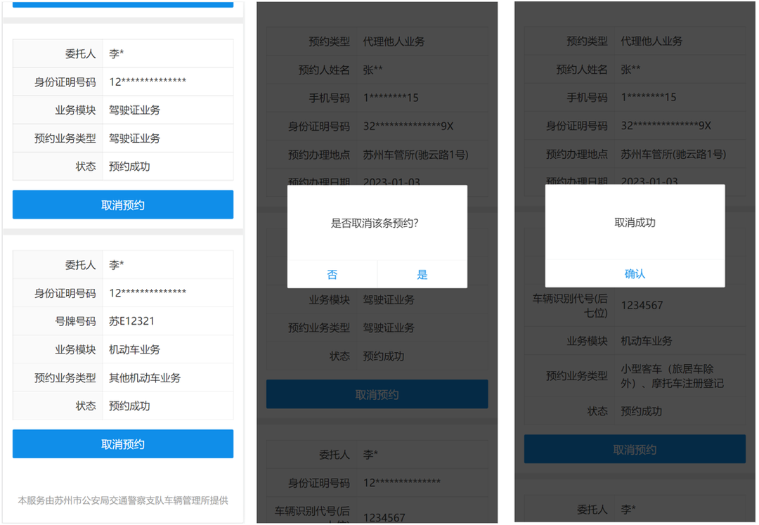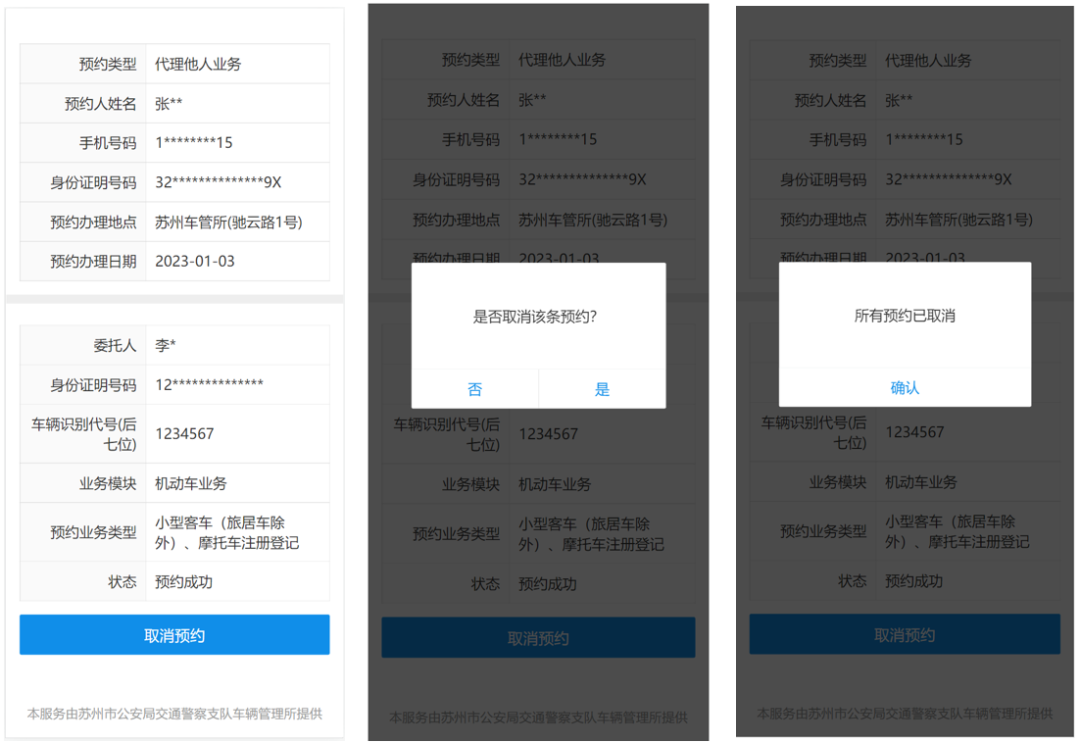 7.完成最后一条预约记录取消后提示:“所有预约已取消”。