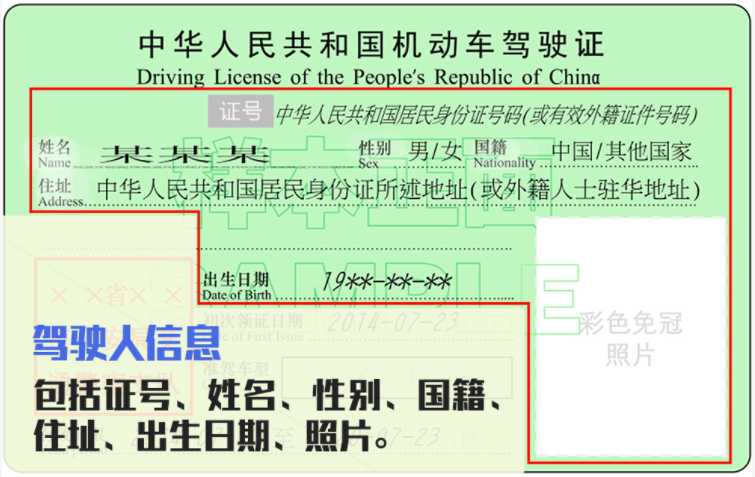 (一)机动车驾驶人信息:姓名、性别、出生日期、国籍、住址、身份证明号码(机动车驾驶证号码)、照片;