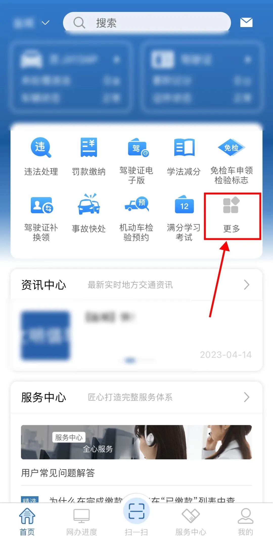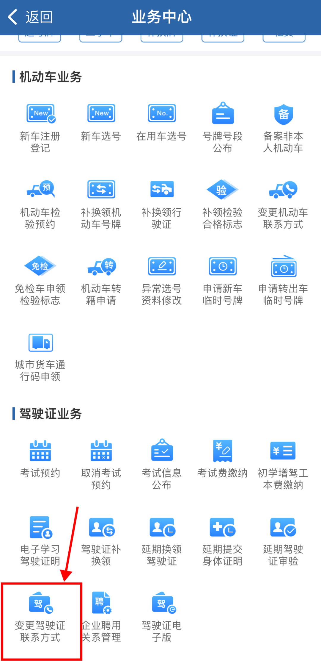 2.点击更多后在驾驶证业务下方找到变更驾驶证联系方式;