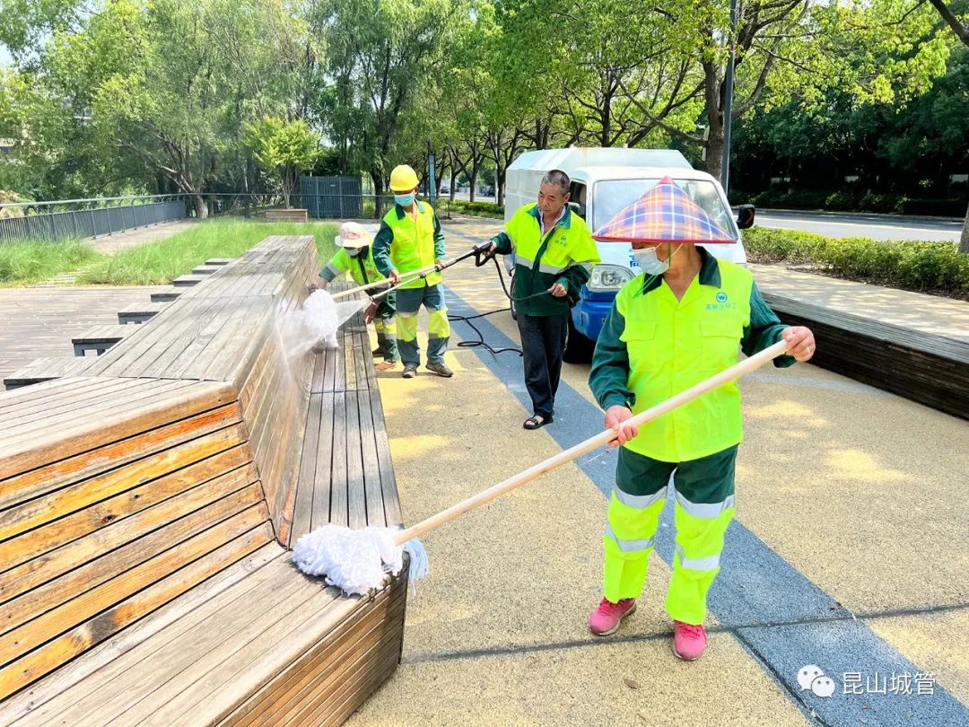 小昆了解到,为提升城市环境品质,市环卫部门始终坚持党建与业务工作深度融合,在“党建+”服务的指引下,“席地而坐”城市客厅示范区按照“室外环境、室内标准”落实高标准深度保洁,做到“四无三洁二见一现”,即:无垃圾杂物、无污渍痰迹、无积尘泥沙、无积水枯叶,道路广场洁、城市家具洁、墙角砖缝洁,道路见底色、标线见本色,绿化现景致。将原本只注重道路路面这种平面保洁向立面、剖面作业延伸,形成全方位立体的深度作业保洁模式。如:路面保洁从机动车道洗扫,向慢车道、人行道以及广场、游园内的园路、台阶等硬质铺装的洗扫、洗刷、洗冲延伸,做到平面深度保洁;立面保洁由单纯的交通护栏和废物箱擦洗增加了花箱花架、条椅石凳、健身器材等多类城市家具的人工擦拭和机械冲洗,做到立面精洗保洁;加大对墙角砖缝等剖面细节处保洁的力度,做到精准有效。