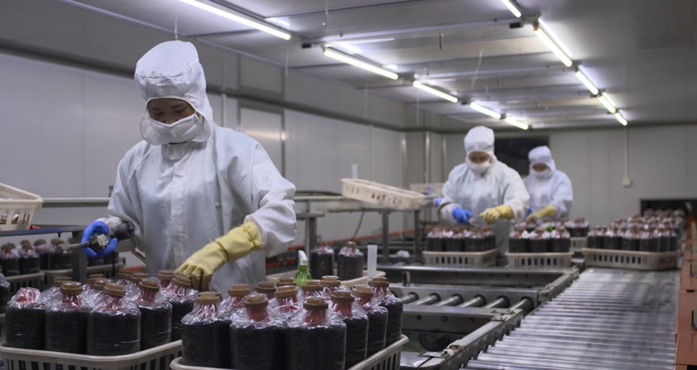 江苏润正生物科技有限公司成立于2012年9月,位于海峡两岸(昆山)农业合作试验区内,公司主要生产白玉菇、杏鲍菇等食用菌品类。近年来,公司加快数字化转型步伐,投入1500余万元,用于工厂化、自动化改造。“通过持续多年的改造升级,目前公司已建成了一套完整的菌菇流水线生产轨道系统,菌菇制包装袋、接种培养、出菇采收、分级包装等均引入自动化流水线,实现了全程自动化。”公司副总经理郑华荣介绍。