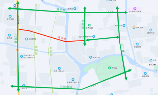 花园路起点接江浦路地面交叉口,向东经过鹿城路、虹桥路,跨越张家港,工程终点接水秀路交叉口,全长1.817公里。