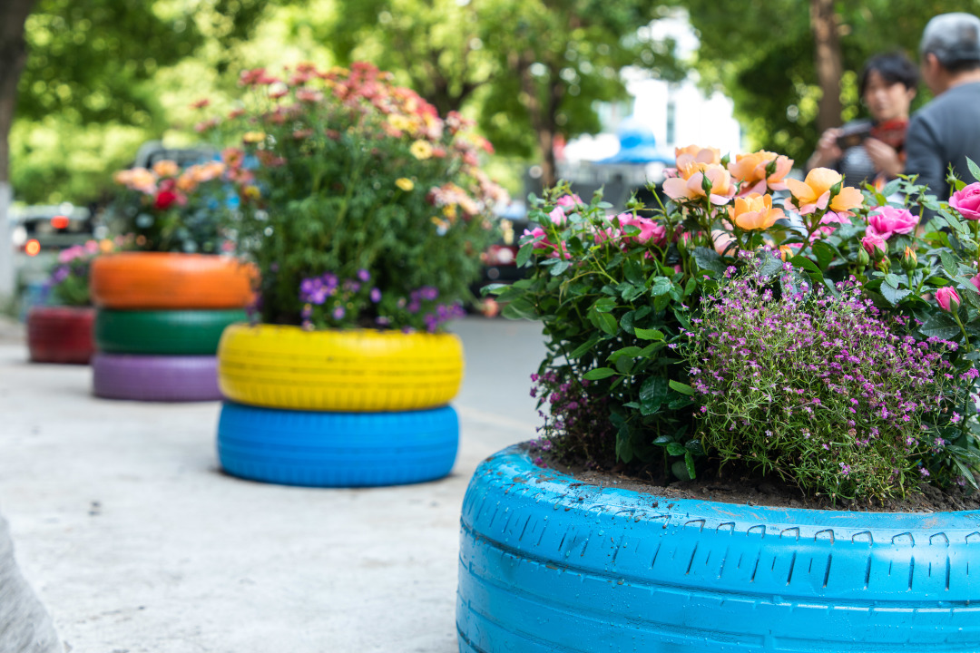 打造“口袋庭院”!废弃轮胎变身创意彩绘