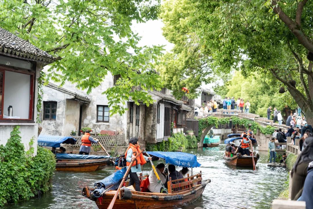 “五一”期间,被誉为“中国第一水乡”的周庄景区内游人如织。来自浙江的李岚一家在周庄畅享了3天的慢生活,除了游览张厅、沈厅、香村·祁庄等处,还前往贞丰文化街一探砖瓦坊、竹编坊、草编坊等江南传统手艺,欣赏了昆曲、苏州评弹,在茶香与歌声中赏景谈天,邂逅周庄韵味。