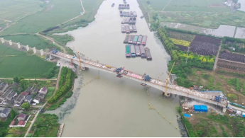 沪苏湖铁路 苏湖特大桥跨太浦河连续梁合龙
