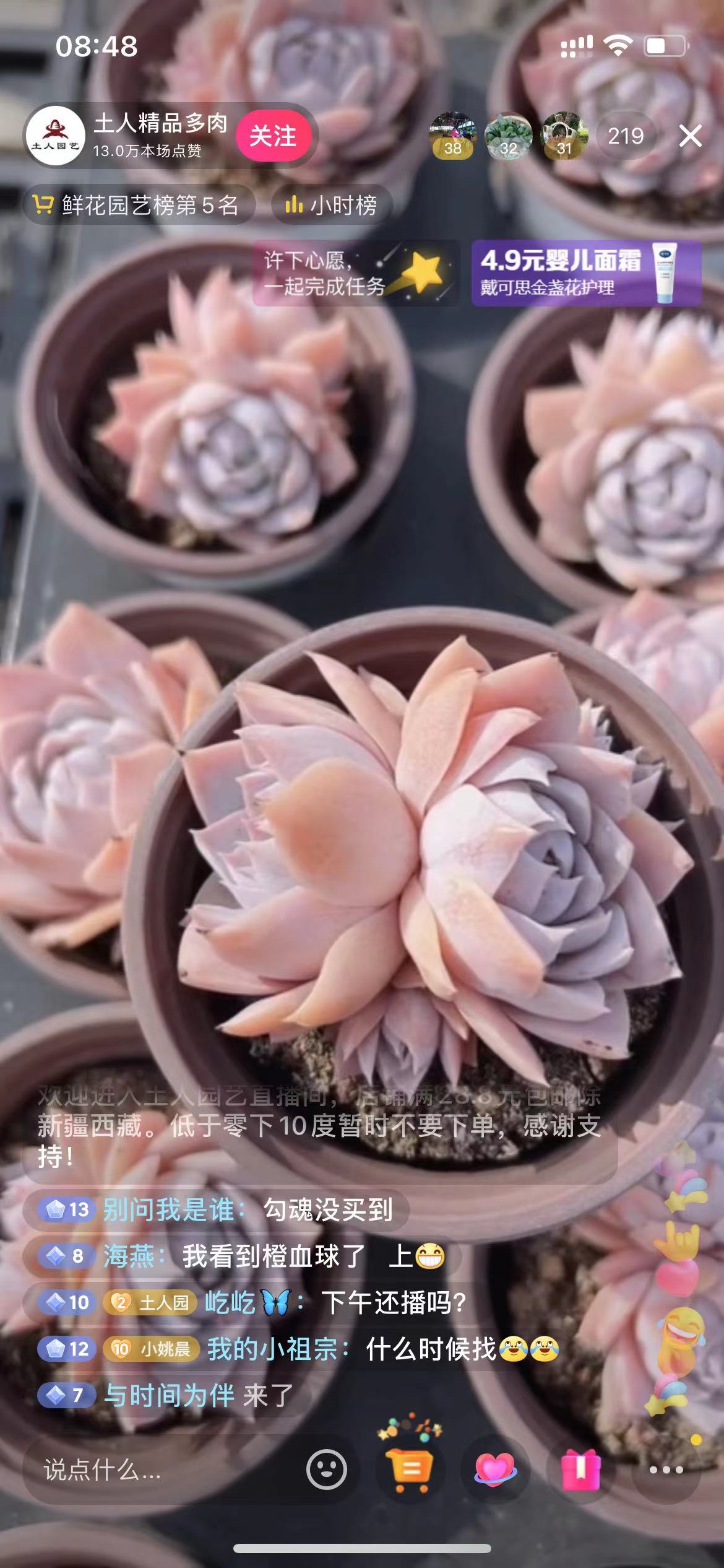 顺应花友的需求,今年开始,我们聘请了专业主播,直播周期从之前的一周三场升级为每天直播,直播时长也从原来的4小时延长至7小时。今年我们有信心销售额突破千万元。希望通过互联网的传播,让每一棵植物展现独一无二的姿态,让更多人感受绿植带来的自然美感,用绿色治愈人心。