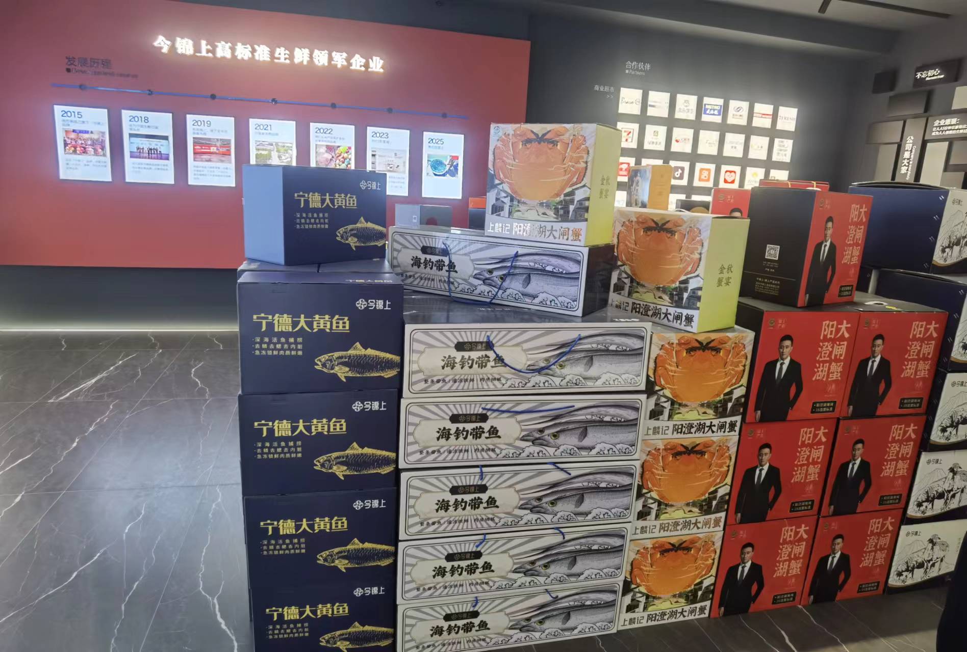 大闸蟹是时令性美食,为了填补销售淡季产品空缺,今锦上的生鲜版图不断拓展。眼下最热门的麻辣、十三香小龙虾,带鱼、虾仁、大黄鱼等海鲜单品、大礼包等全年热销,点开京东、天猫、拼多多等第三方电商平台都能找到今锦上品牌旗舰店一键购物。除此之外,大家熟悉的盒马、叮咚买菜、美团优选等线上平台,以及永辉超市、家乐福等线下商超也都有今锦上的身影。