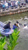 将孩子接住安全地放在船上