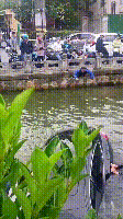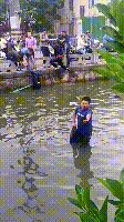 当时,我就想着赶紧去附近找个工具砸车窗玻璃救人,于是立即到路边的一家小店,借到了一把铁锤,我马上飞奔过来,连衣服都没顾得上脱就跳入水中,向车身游去。
