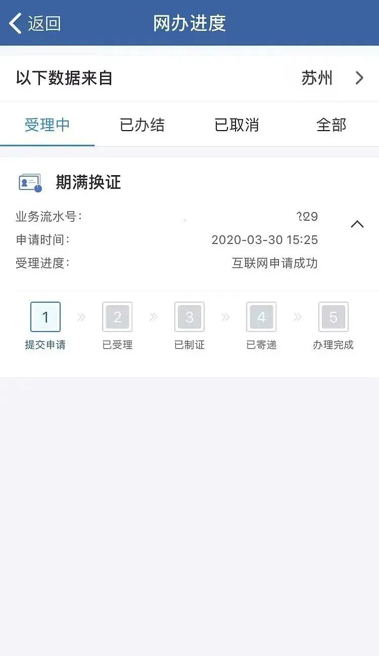 6.申请后需要经过受理、制证等流程,可在首页下方【网办进度】中查询。