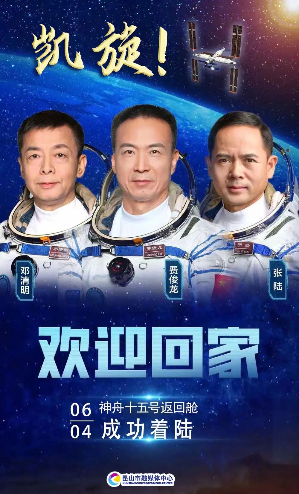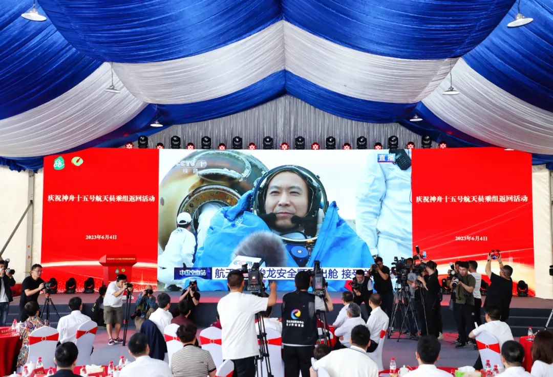 6月4日清晨,东风着陆场晨光熹微,神舟十五号航天员乘组安全着陆;费俊龙的家乡昆山巴城微风和畅,庆祝神舟十五号航天员乘组返回活动现场一片欢腾。