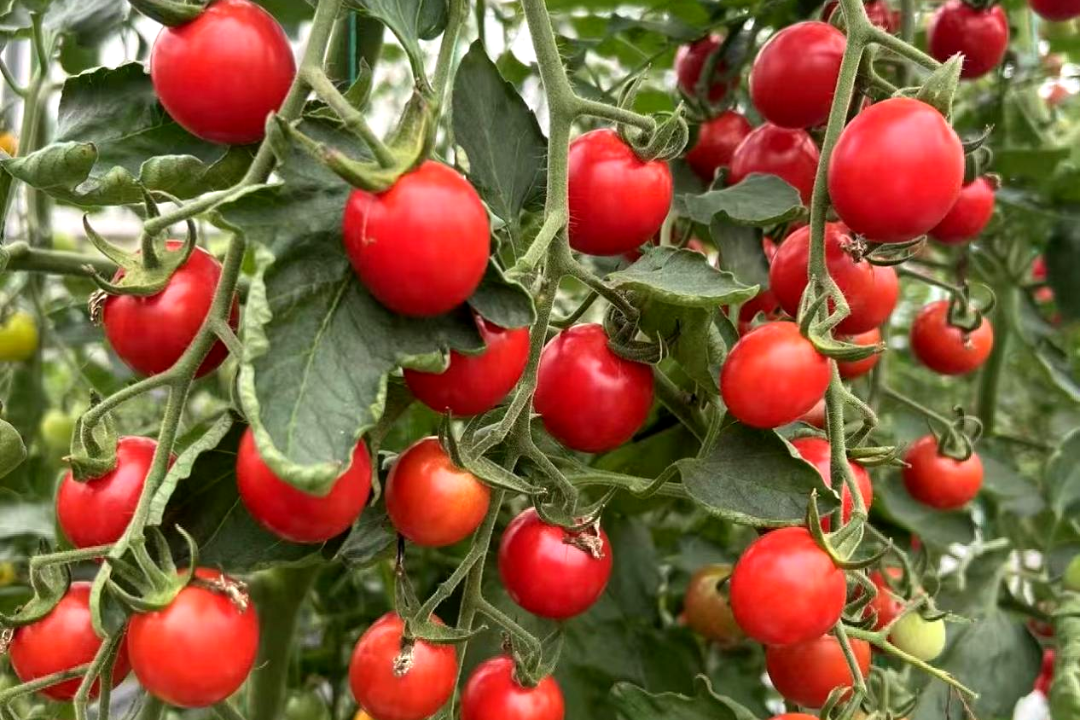 一串串长势喜人的小番茄缀满枝头