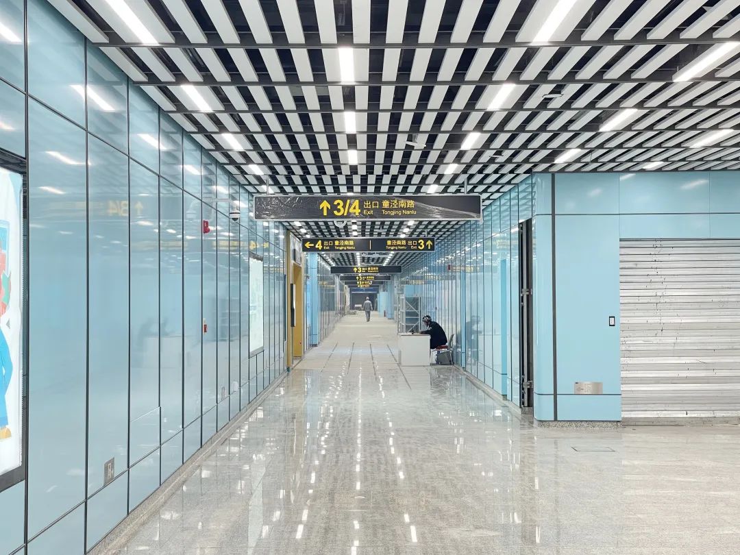 祖冲之公园站车站站台、站厅宽敞、明亮,闸机、售票机已准备就绪。