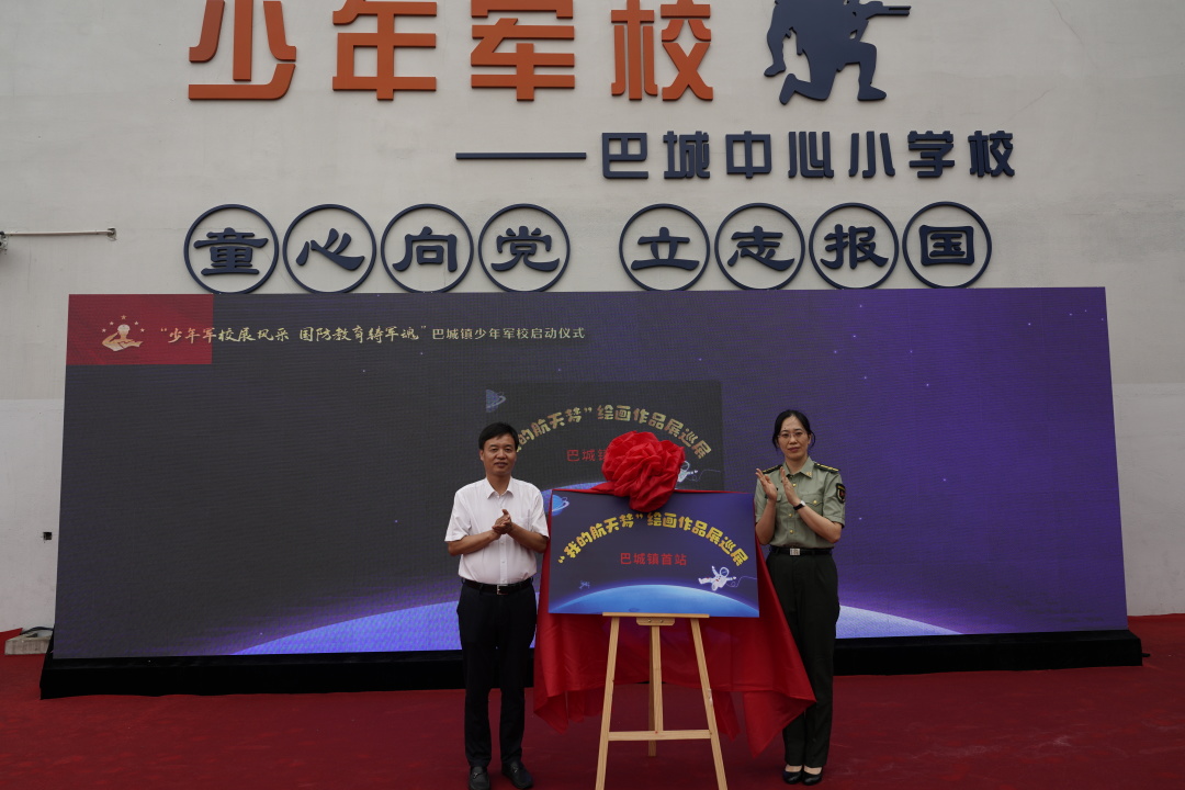 活动中,巴城镇人武部向少年军校授旗。“我的航天梦”绘画比赛作品巡展揭幕,将以巴城镇为首站,陆续在其他区镇持续巡回展览,至少持续2个月。