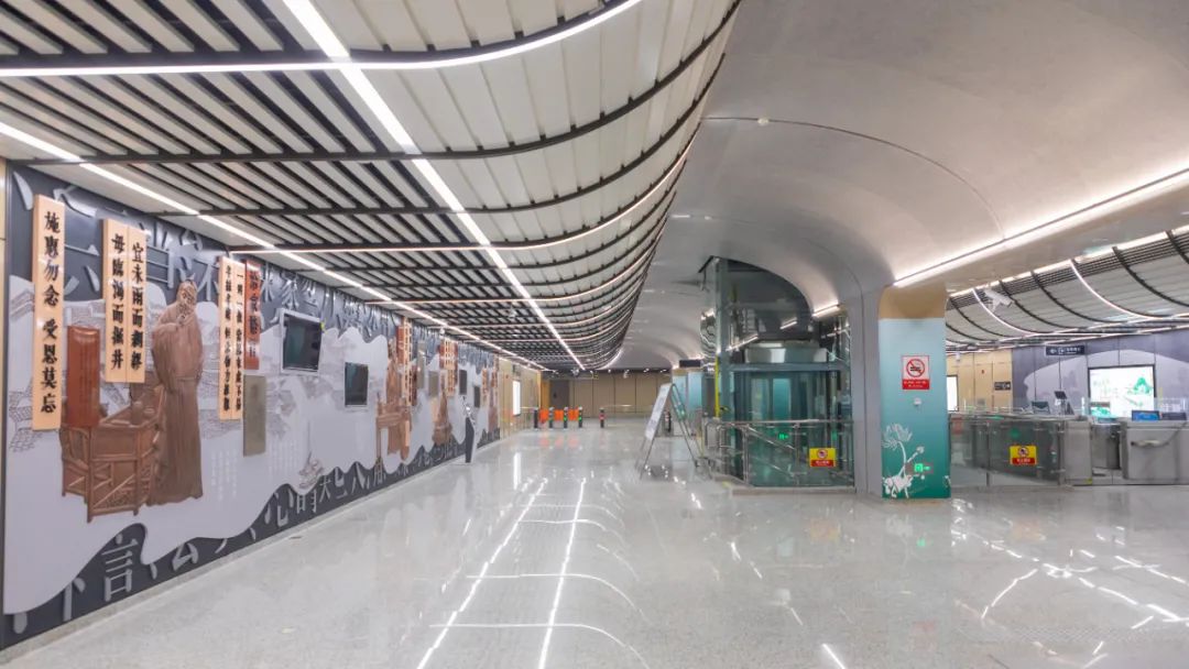 苏州轨交11号线站台设计现代化气息浓郁,而且还将并蒂莲、“三贤”文化、昆曲等极具昆山地方特色元素很好地融入其中,非常亲切。