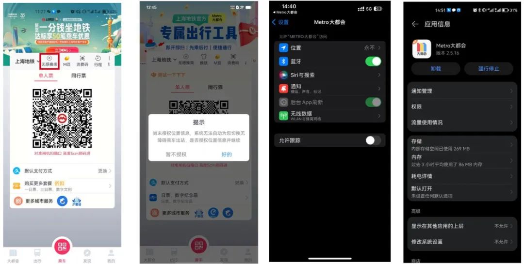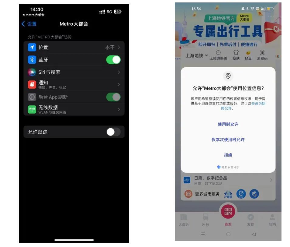 开通“无感换乘”服务后,在使用过程中需全程开启定位权限,不能中途关闭定位服务。