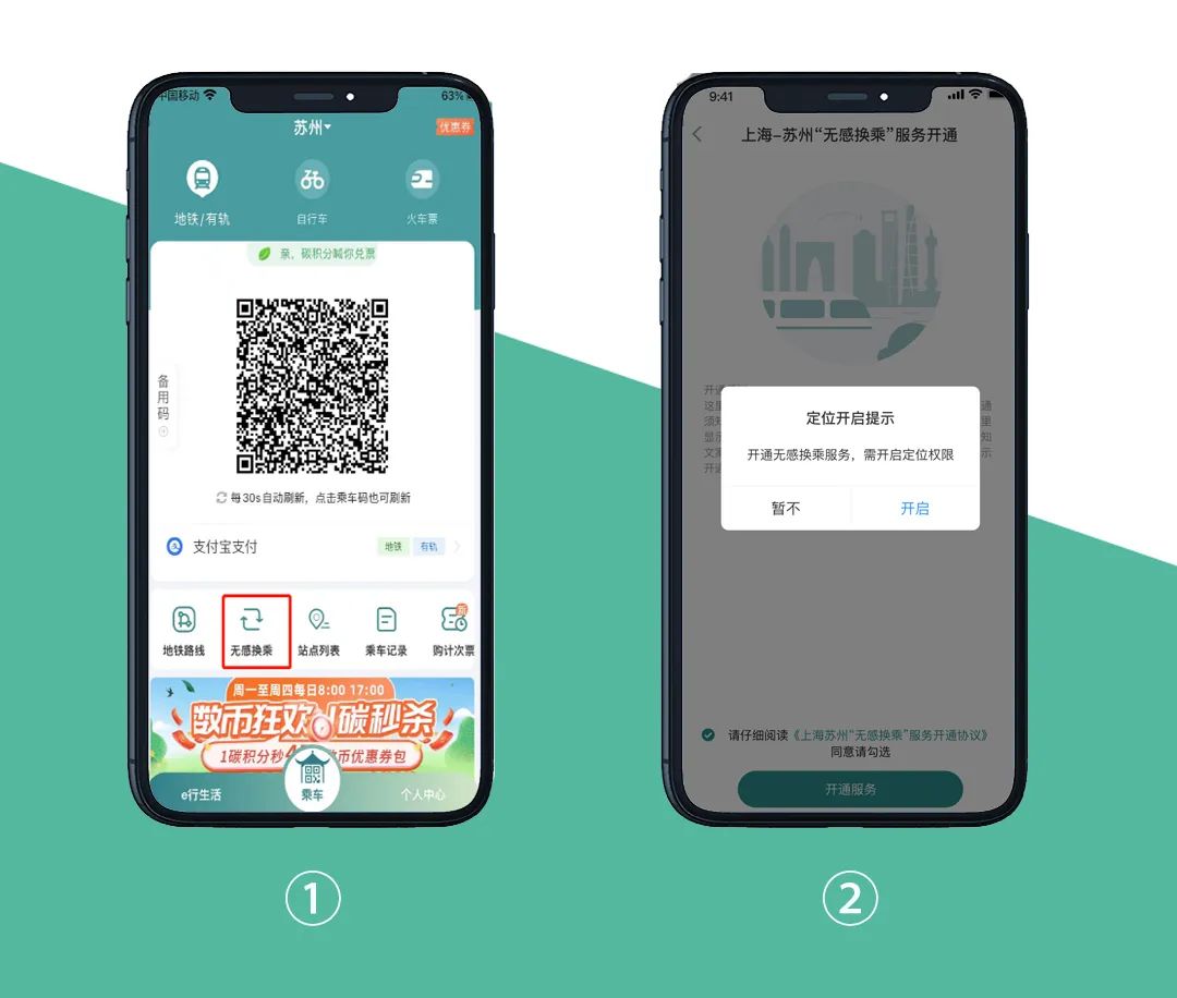 乘客使用“苏e行”或“Metro大都会”App扫码,从苏州/上海任一站点进站后,按照标识指引,通过“无感换乘”通道,即可进入另一个城市的地铁网络,在其任一站点出站。(体验类似于在4号线察院场进站,通过乐桥换乘,在东方之门出站一样,无须再次扫码、安检)